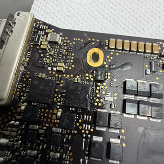 Amatör müdahalelerde uygulanan yanlış ısı ve kontrolsüz işlem, özellikle hassas entegrelerde geri dönüşü zor hasarlara neden olabilir. Bu cihazda da Type-C ve Thunderbolt kontrolcüleri doğrudan etkilenmiştir. 🔧 Yapılan Onarım İşlemleri